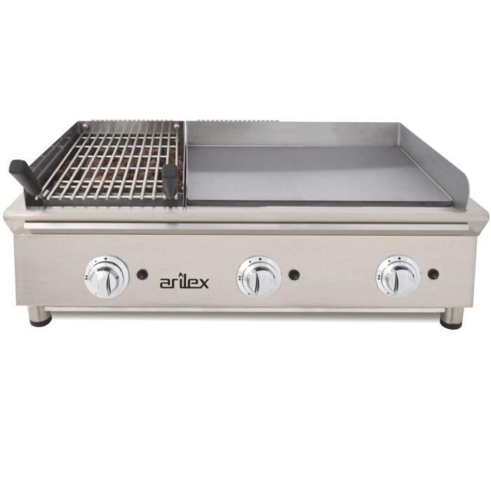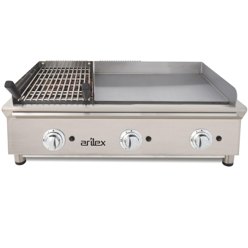 Frytop a Gas Acero Rectificado Placa Lisa + Barbacoa a Gas Piedra Volcánica Sobremesa Gama 600 – 1000x587x364h mm 100FRYGRBN ARILEX