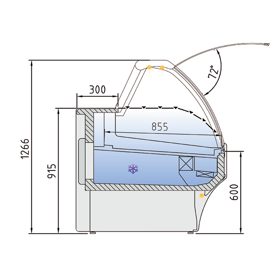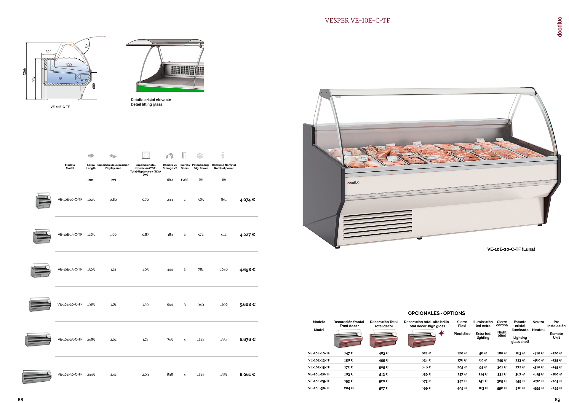 Vitrina Expositora Refrigerada con Reserva para Carnicería y Charcutería Cristal Curvo Evaporador Ventilado Serie VESPER VE-10E-C-TF 1025x1100x1266h mm VE-10E-10-C-TF Docriluc