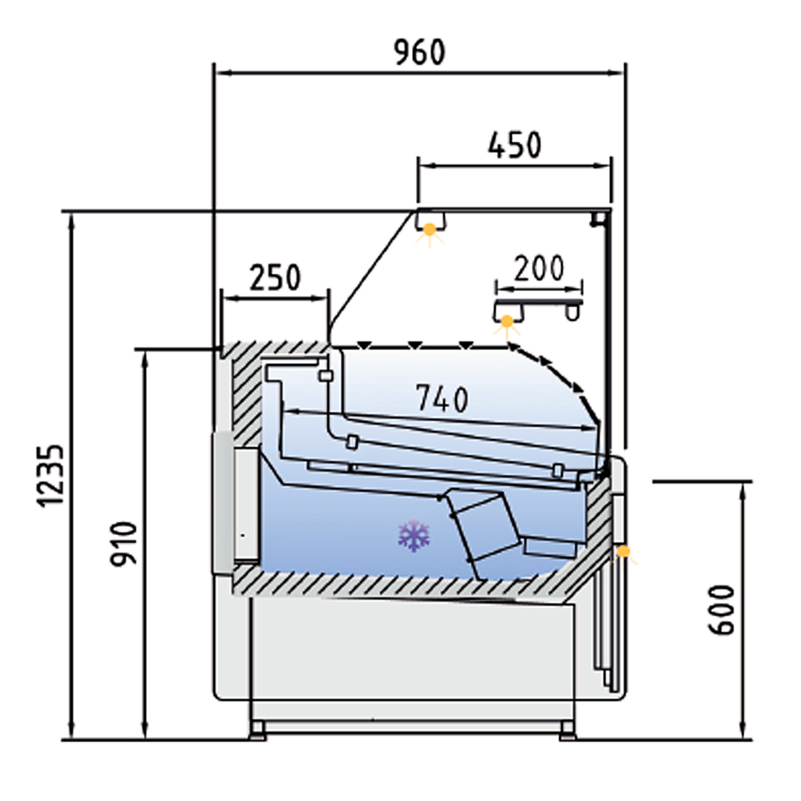 Vitrina Expositora Refrigerada con Reserva para Carnicería y Charcutería Cristal Recto Evaporador Estático Serie JUNIPER VE-9-RC 1025x960x1235h mm VE-9-10-RC Docriluc