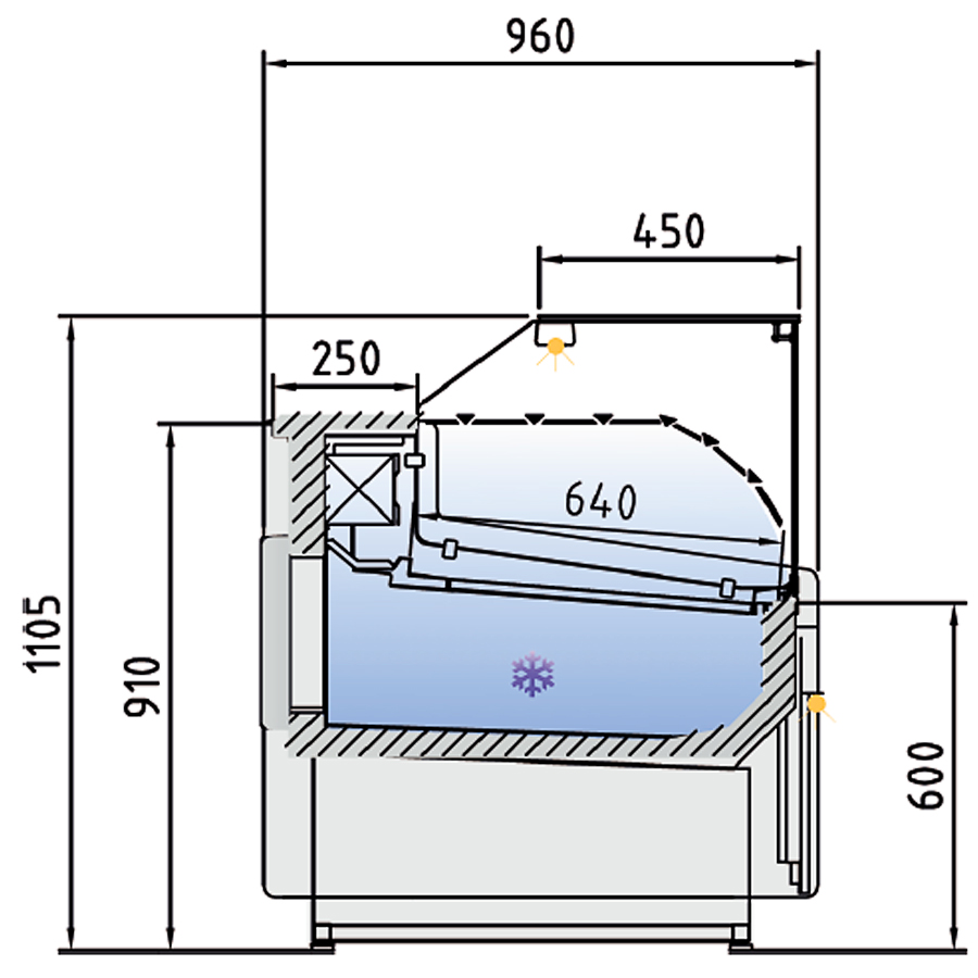 Vitrina Expositora Refrigerada con Reserva para Carnicería y Charcutería Cristal Recto Evaporador Estático Serie JUNIPER VE-9-RCB 1025x960x1150h mm VE-9-10-RCB Docriluc