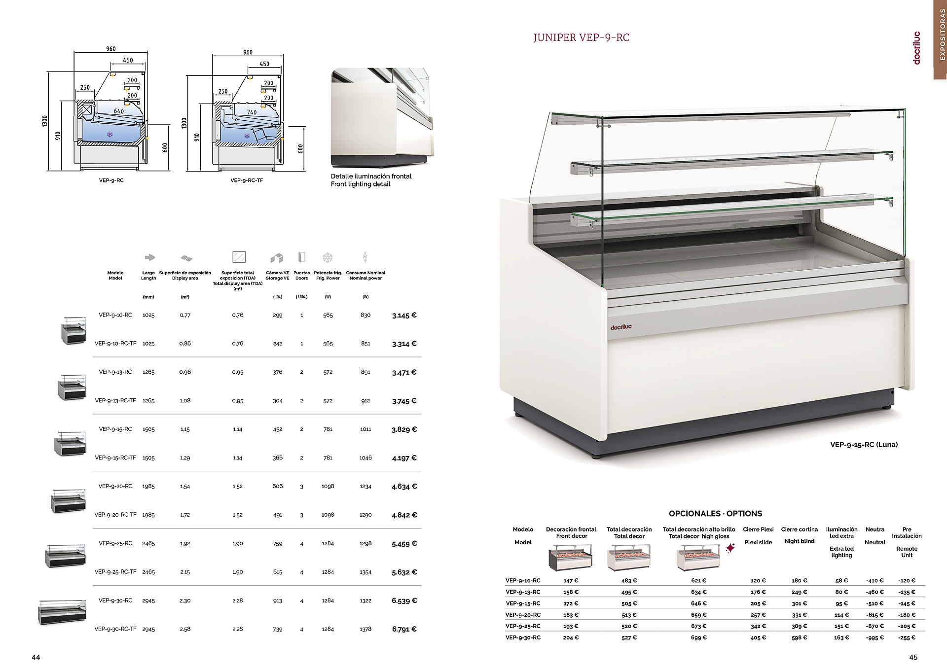 Vitrina Expositora Refrigerada con Reserva para Carnicería y Charcutería Cristal Recto Evaporador Estático Serie JUNIPER VEP-9-RC 1025x960x1300h mm VEP-9-10-RC Docriluc