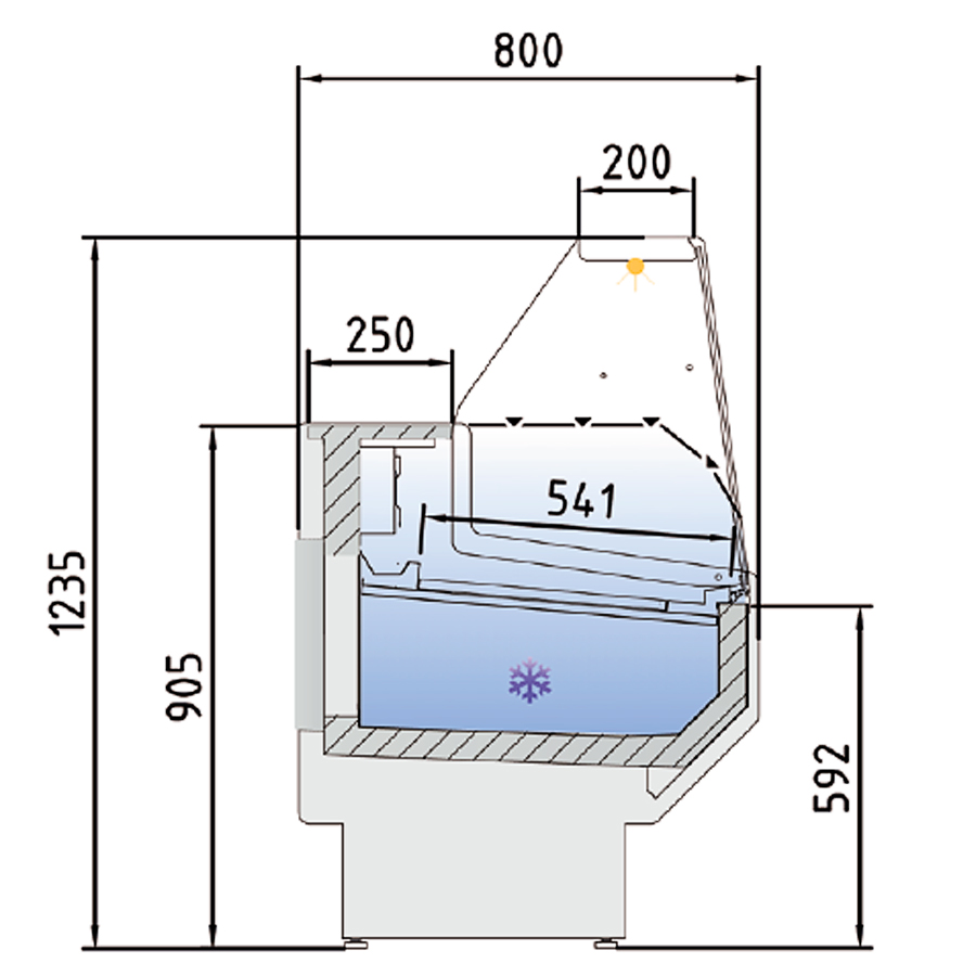 Vitrina Expositora Refrigerada con Reserva para Carnicería y Charcutería Cristal Recto Evaporador Estático Serie NERIA VED-8-R 2945x800x1266h mm VED-8-30-R Docriluc