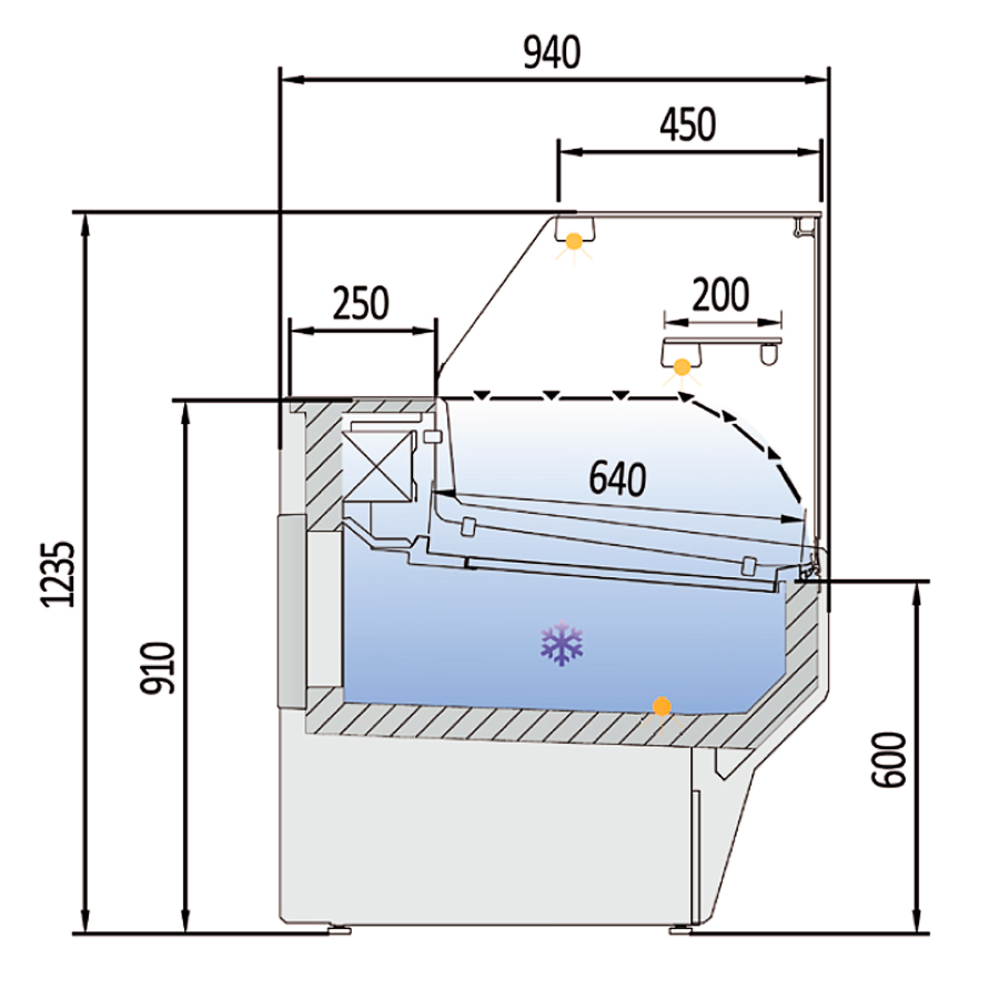 Vitrina Expositora Refrigerada con Reserva para Carnicería y Charcutería Cristal Recto Evaporador Estático Serie VESPER VE-9-RR 1025x940x1235h mm VE-9-10-RR Docriluc