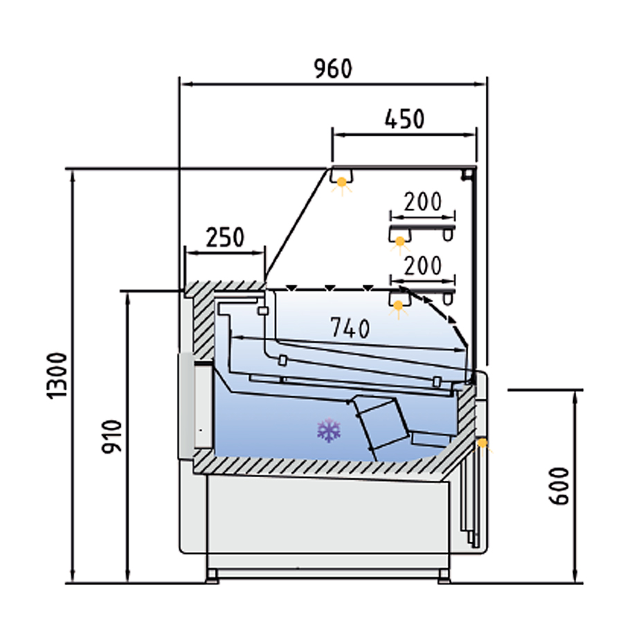 Vitrina Expositora Refrigerada con Reserva para Carnicería y Charcutería Cristal Recto Evaporador Ventilado Serie JUNIPER VEP-9-RC 1025x960x1300h mm VEP-9-10-RC-TF Docriluc