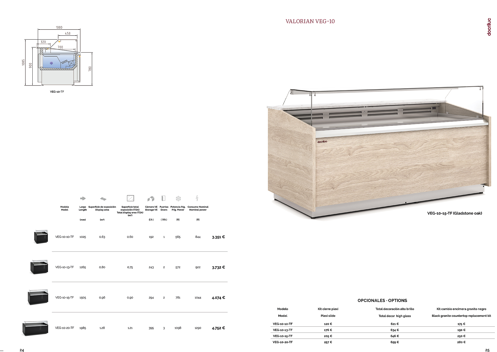 Vitrina Expositora Refrigerada con Reserva para Carnicería y Charcutería Cristal Recto Evaporador Ventilado Serie VALORIAN VEG-10 – 1025x1000x1085h mm VEG-10-10-TF Docriluc