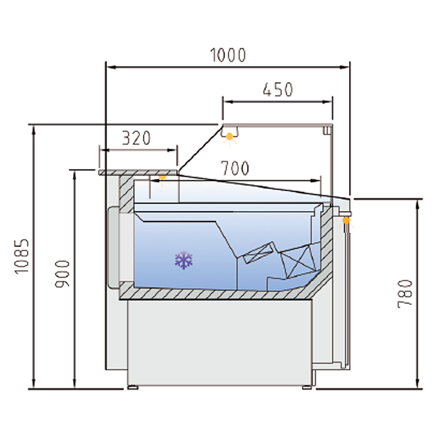 Vitrina Expositora Refrigerada con Reserva para Carnicería y Charcutería Cristal Recto Evaporador Ventilado Serie VALORIAN VEG-10 – 1025x1000x1085h mm VEG-10-10-TF Docriluc