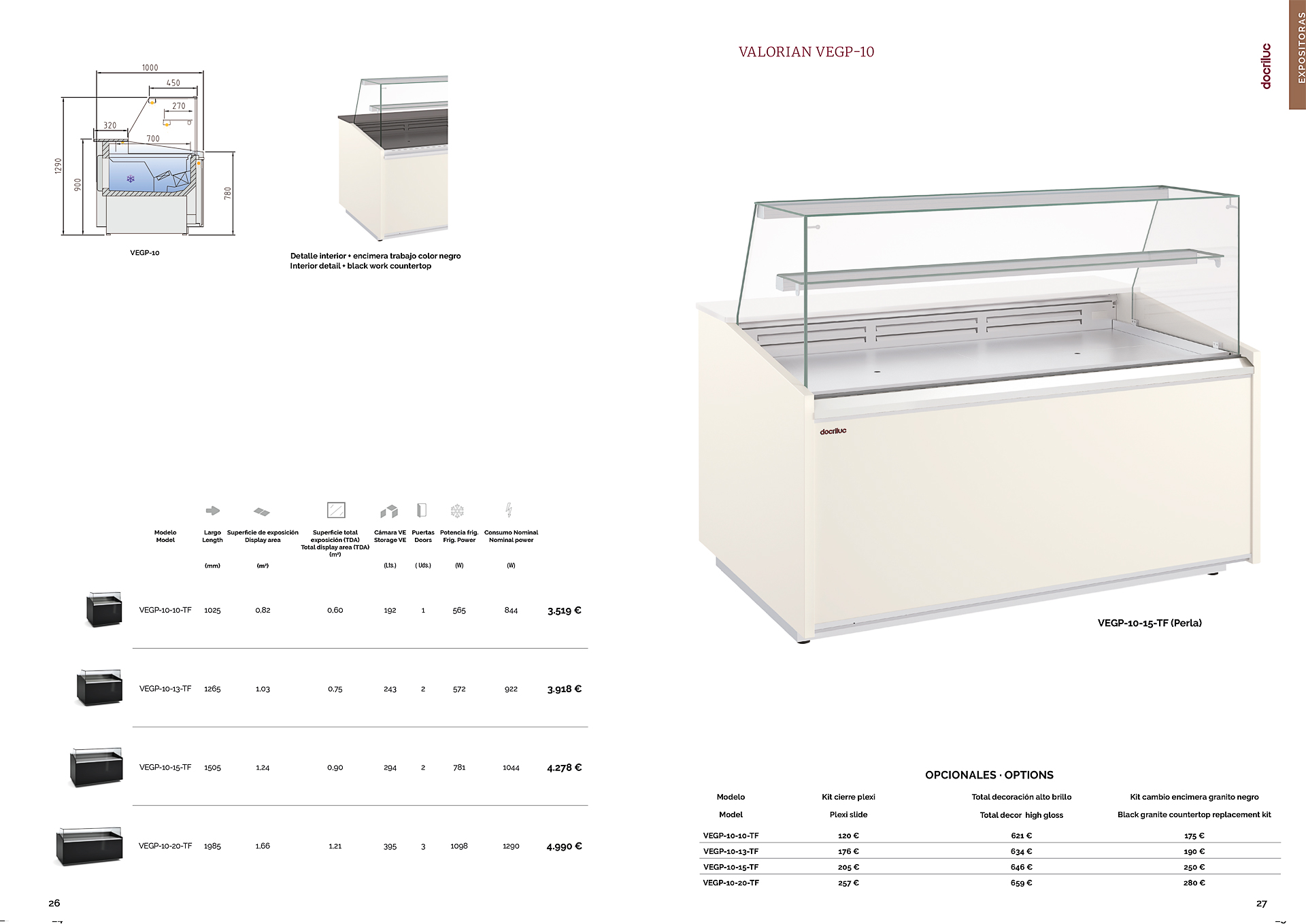 Exposición compatible con cubetas GN 1/1 o 1/6 (VETB) (Incluidas)