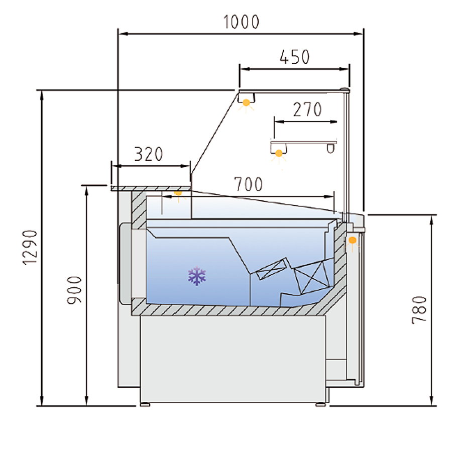 Vitrina Expositora Refrigerada con Reserva para Carnicería y Charcutería Cristal Recto Evaporador Ventilado Serie VALORIAN VEGP-10 – 1025x1000x1290h mm VEGP-10-10-TF Docriluc