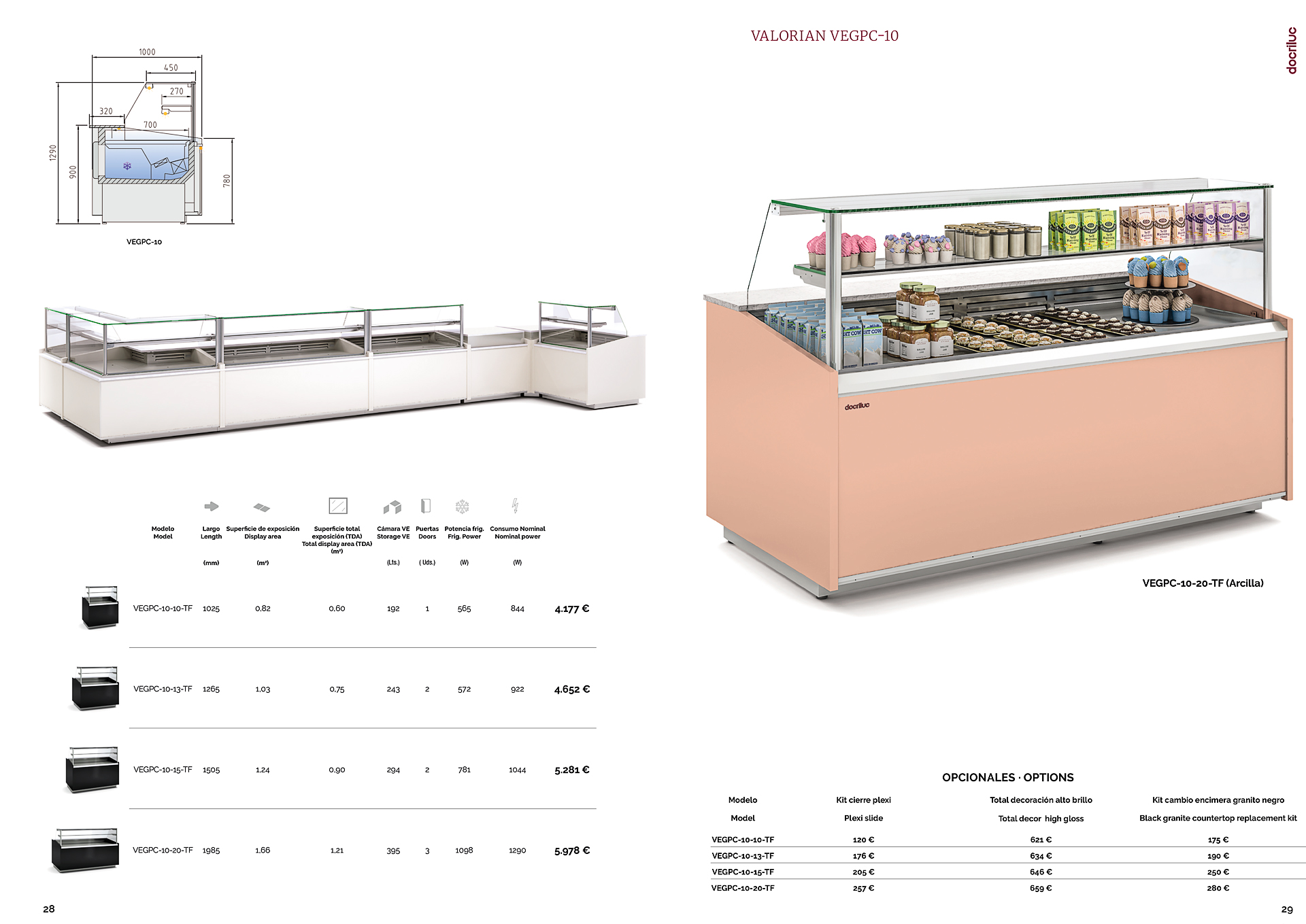 Exposición compatible con cubetas GN 1/1 o 1/6 (VETB) (Incluidas)
