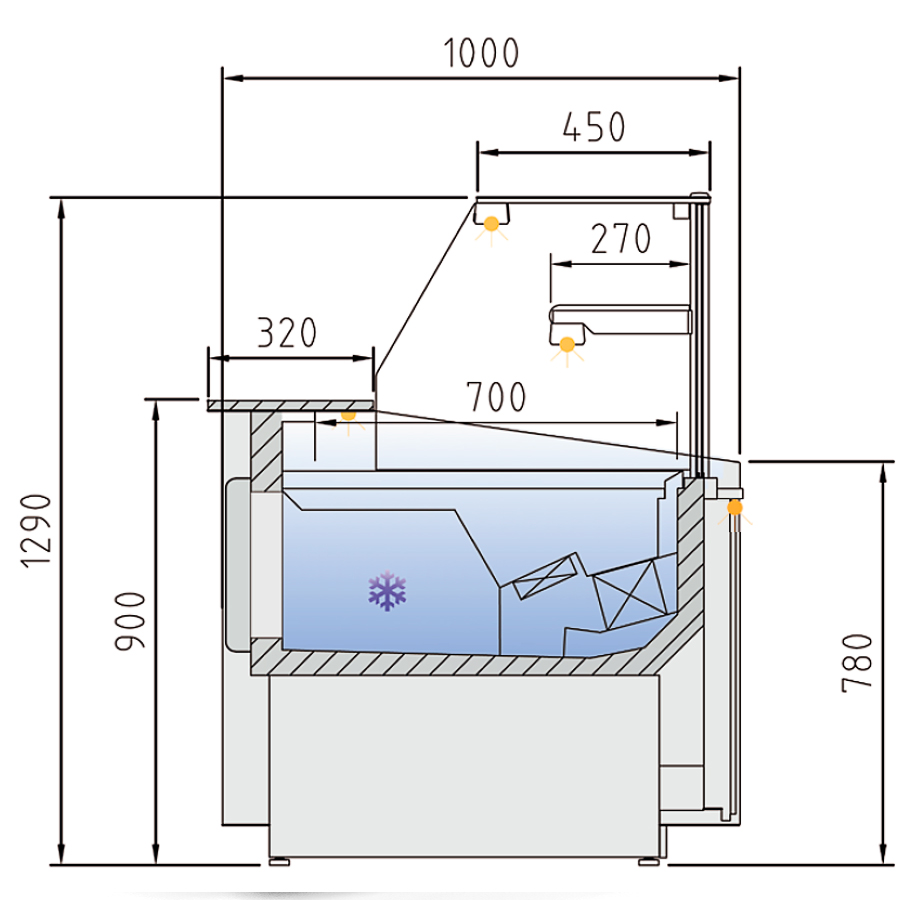 Vitrina Expositora Refrigerada con Reserva para Carnicería y Charcutería Cristal Recto Evaporador Ventilado Serie VALORIAN VEGPC-10 – 1025x1000x1290h mm VEGPC-10-10-TF Docriluc