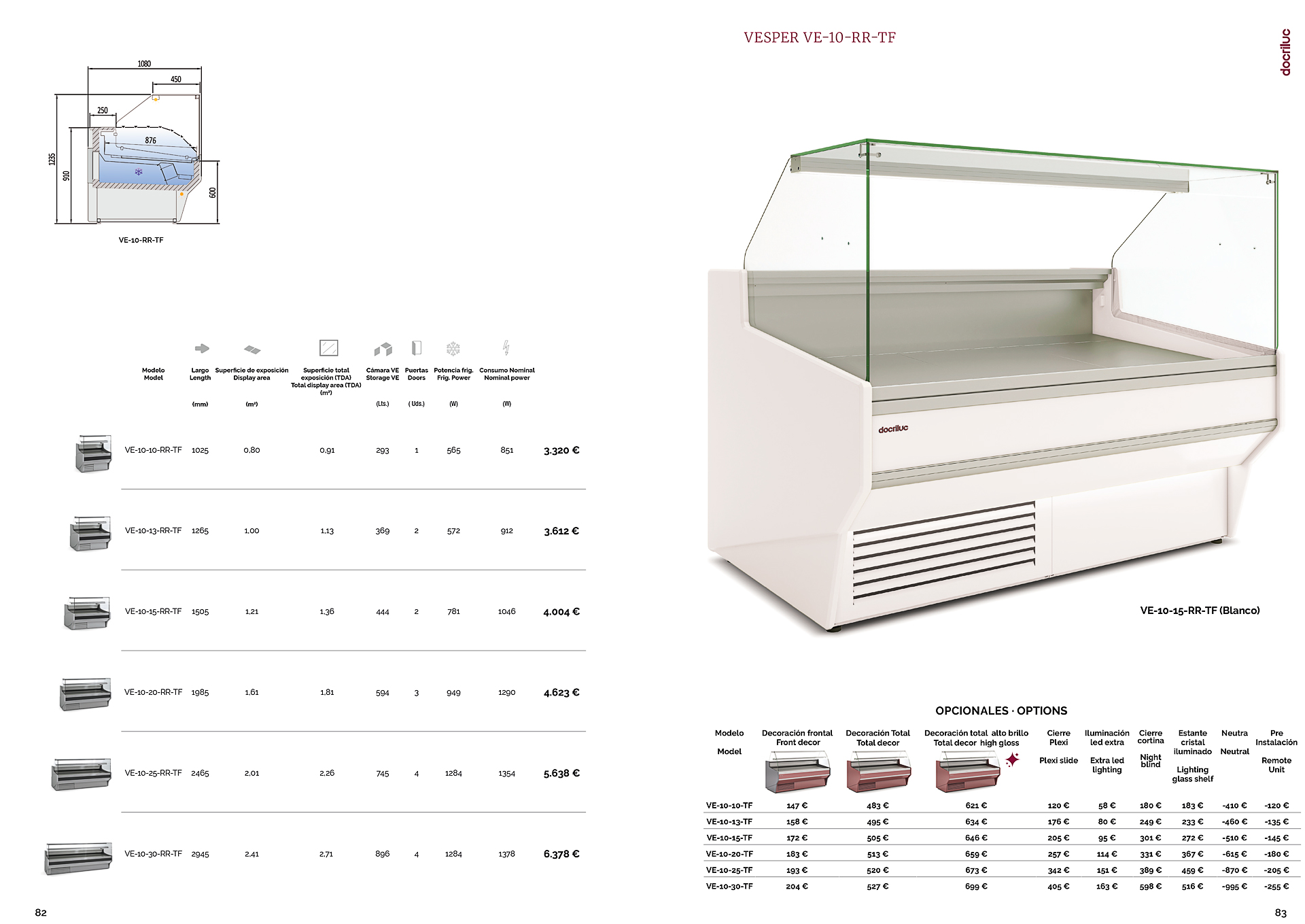 Vitrina Expositora Refrigerada con Reserva para Carnicería y Charcutería Cristal Recto Evaporador Ventilado Serie VESPER VE-10-RR-TF 1025x1080x1235h mm VE-10-10-RR-TF Docriluc